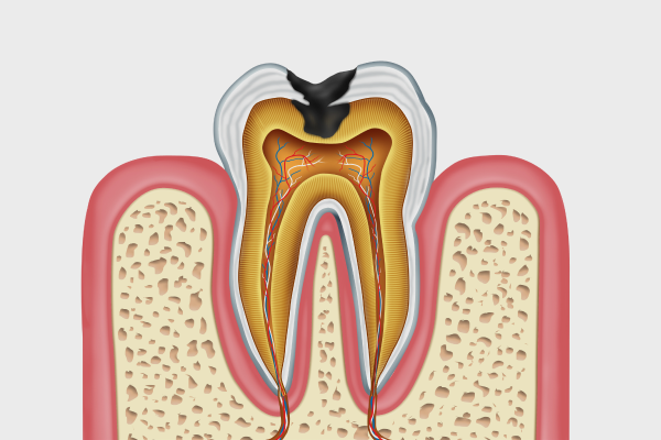 법랑질 안쪽까지 감염되어, 차가운 음식이나 음료에 시린 증상이 나타날 수 있습니다.