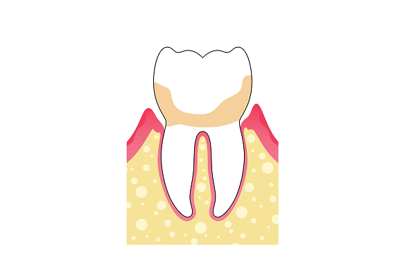 치석이 치아 뿌리의 절반 이상까지 진행된 상태로, 잇몸뼈 손상이 시작될 수 있습니다.