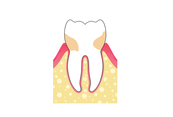치석이 치아 뿌리의 절반 이상까지 진행된 상태로, 잇몸뼈 손상이 시작될 수 있습니다.